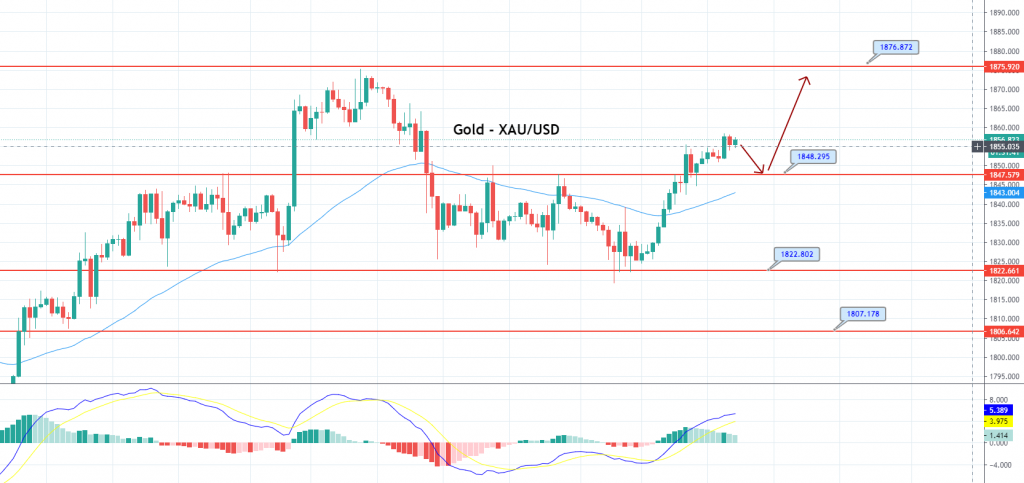 The precious metal, GOLD, continues to trade bullishly at the 1,857 level, having crossed over the double top resistance level of 1,857. On the higher side, the metal opens up further room for buying until the next target levels of 1,865 and 1,875. On the lower side, GOLD may find support at 1,848, and below this level, the metal could drop until the 1,832 level. Let’s consider staying bullish over the 1,848 level today. Good luck!