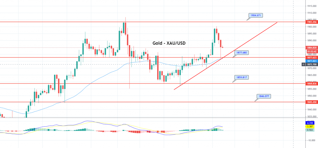 Apart from this, the growing market worries about the B.1.1.7 strain of COVID-19 and the discovery of a second mutant strain of the virus also keep favoring the yellow metal bulls. The gold prices are currently trading at 1,890.60 and consolidating in the range between 1,879.39 and 1,900.32.