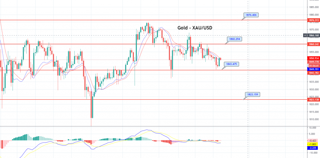 The precious metal, GOLD, closed at 1,850.57, after placing a high of 1,861.64, and a low of 1,848.29. On Tuesday, the GOLD prices edged lower, due to concerns over a fresh US coronavirus aid package, while a slightly weaker dollar and a subdued treasury yield limited its losses. At the same time, investors kept a close eye on the Federal Reserve policy meeting. The investor sentiment deteriorated on Tuesday, as concerns came up about the potential roadblocks to new US President Joe Biden’s planned $ 1.9 trillion stimulus package, which weighed on the prices for the yellow metal. The rising treasury yields have been supporting the market sentiment for the past few days. On Tuesday, the US Treasury yields fell close to their lowest level in three weeks, putting pressure on the market sentiment and eventually dragging the gold prices down too, due to the escalation of expectations that Joe Biden will not succeed in delivering the massive stimulus measure he has planned.