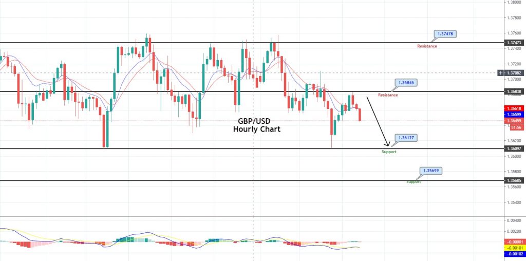 The GBP/USD is trading with a bearish bias at 1.3659 level, holding below an immediate resistance level of 1.3684 level. On the lower side..