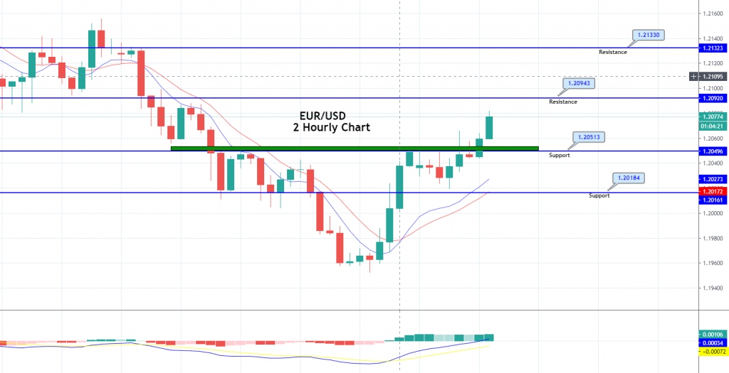 The EUR/USD pair closed at 1.20497, after placing a high of 1.20657, and a low of 1.20196. Despite the strength of the US dollar on Monday, the EUR/USD pair continuously posted gains, amid the improved risk sentiment in the market. The economic growth expectations rose sharply after the hopes for fiscal stimulus from the US and the accelerated vaccination program, which supported the risk sentiment.