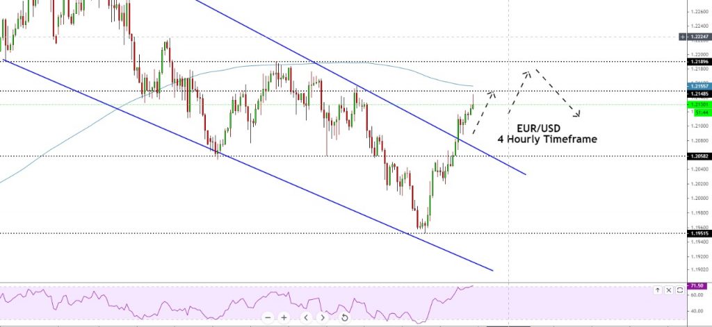 The EUR/USD closed at 1.21193, after placing a high of 1.21216, and a low of 1.20437. The EUR/USD currency pair posted gains for the third consecutive session on Tuesday, amid the weakness of the broad-based US dollar and a rising risk sentiment in the market. Last week, the rally in the US dollar triggered a strong bearish momentum in the EUR/USD pair, dragging it to the lowest level in two months, close to 1.1954. However, this week, rising expectations in the US, for the promised stimulus measures, halted the risk rally in the greenback, weighing on the currency and triggering the bullish momentum in the EUR/USD pair.