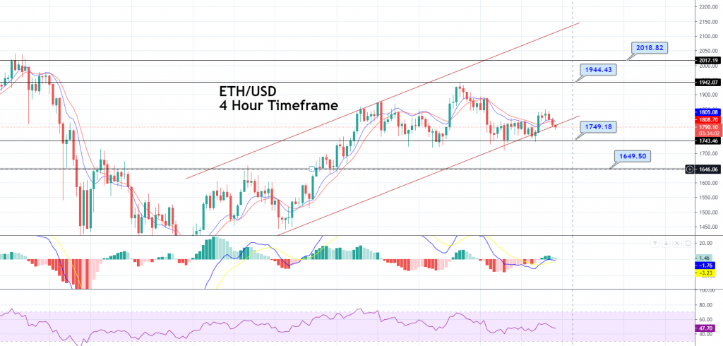 The ETH/USD was closed at 1823.35 after placing a high of 1837.88 and a low of 1743.62. Ethereum prices extended their gains and rose for a