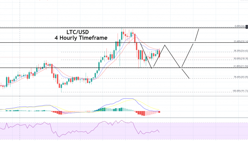 The LTC/USD was closed at 218.974 after placing a high of 242.829 and a low of 211.00. After rising for eight consecutive days, LTC/USD drop