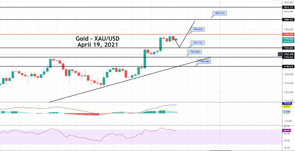 In contrast, the upbeat U.S. data and faster vaccination shots in the United States and the United Kingdom probes the risk-off market mood, which becomes the key factor keeping a lid on any additional gains in yellow metal prices. Also, capping the gains could be the firmer U.S. dollar as the price of bullion is inversely related to the price of the U.S. dollar. The U.S. dollar was supported by the downbeat market mood, which increased the safe haven demand in the market and contributed to its gains. As of writing, the yellow metal price is trading at 1,778.45 and consolidating in the range between 1,773.26 and 1,783.66.Global equity markets failed to extend their overnight bullish performance. During the Asian trading session amid US-China and the Washington-Kremlin tussles, the mood turned sour, which worsened over time and gained major market attention. Besides, the risk barometer was further pressured by the chatters surrounding U.S. President Joe Biden’s $2.25 trillion infrastructure spending. Meanwhile, the ever-increasing cases of coronavirus (COVID-19) and hike in the death toll exerted some additional downside pressure on the market trading sentiment. The U.S. Republicans showed their dislike for President Biden’s tax hike again while showing a willingness to asset the infrastructure spending if the Democratic Party member steps back on the outlays. There are also some rumors that President Biden is set for stepping back from tax hike proposals.