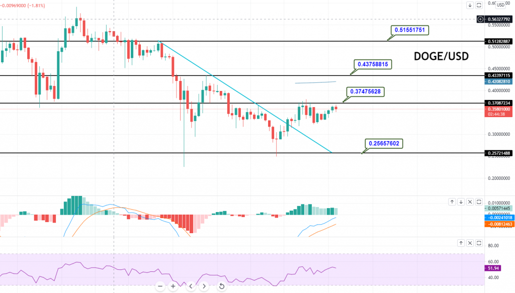 The DOGE/USD was closed at $0.345850 after placing a high of $0.364300 and a low of $0.336380. Dogecoin saw a retreat from the previous day’