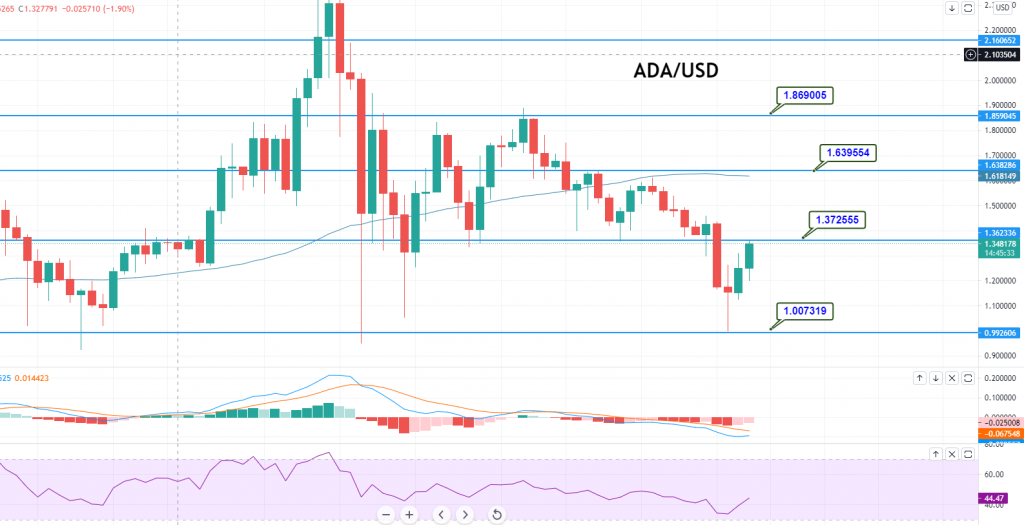 The ADA/USD was closed at $1.250572 after placing a high of $1.306465 and a low of $1.109989. After experiencing a sharp decline