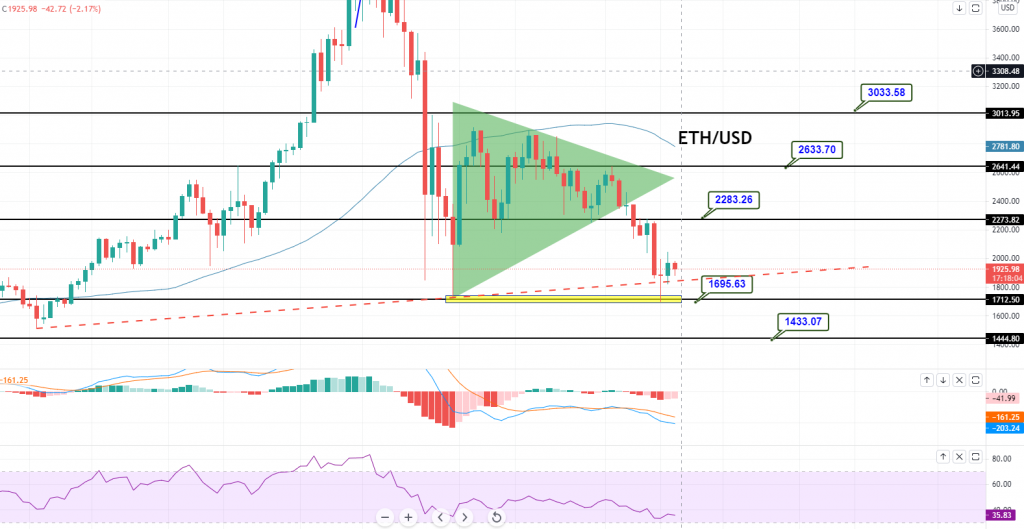 The ETH/USD rose on Wednesday, after Alchemy, an Ethereum Developer platform, announced a partnership with Ethereum layer-2 scaling solution developer Optimism. After this deal, the developers from the Alchemy platform will be able to integrate Optimistic Rollups into their applications. This will provide users with highly scalable and cost-efficient solutions. The ETH/USD closed at $1,967.83, after placing a high of $1,999.17, and a low of $1,877.58.