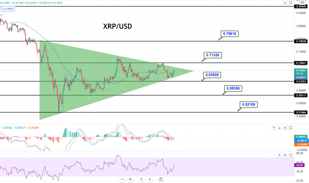 RSI are crossing over the 0 and 50 levels, respectively.Moreover, the 50 periods EMA is supporting the Ripple at 0.6685 today. The coin may also find support in the 0.6668 pivot point area, and above this, the buying trend will dominate. Good luck!