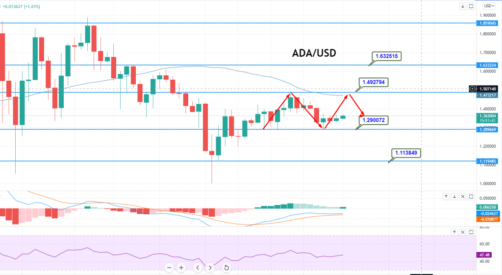 The ADA/USD was closed at $1.416315 after placing a high of $1.456571 and a low of $1.392450. ADA/USD reversed its course and recovered some