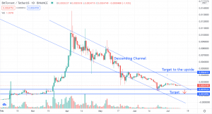 Since April, BitTorrent (BTT) has shown less power to the upside, remaining on a descending channel. The bearish momentum has been linked to the broader sell-offs in cryptocurrencies, due to regulatory rhetoric and environmental criticism.