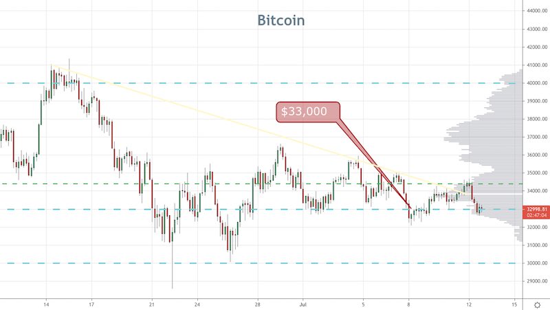 BTC got hit yesterday as it tried to push towards the $35,000 level, as the sellers struck and ultimately saw price fall under the $33,000 mark.