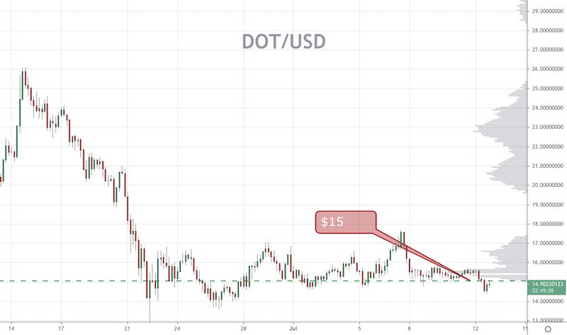 DOT/USD is on the wrong side of the $15 level at the moment and price will need to reclaim that level quickly.