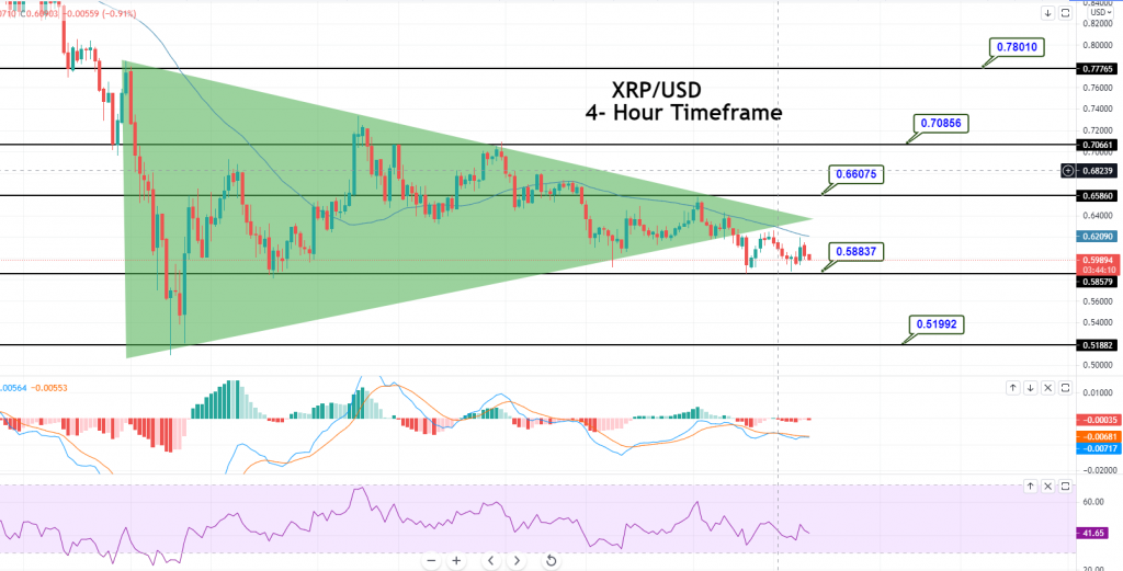 XRP/USD crypto coin failed to put a stop to its losing streak of the previous session, even after San-Francisco-based fintech firm, Ripple, achieved another little victory in its battle against the US Securities and Exchange Commission. The XRP is currently trading at $0.602935, with a 24-hour trading volume of $2,086,219,790. Ripple has declined by 1.38% in the past twenty-four hours. After a failed try to settle above $0.61500, XRP extended its declines, heading downwards and even breaking the $0.60000 support level, well below the 100-hourly simple moving average.
