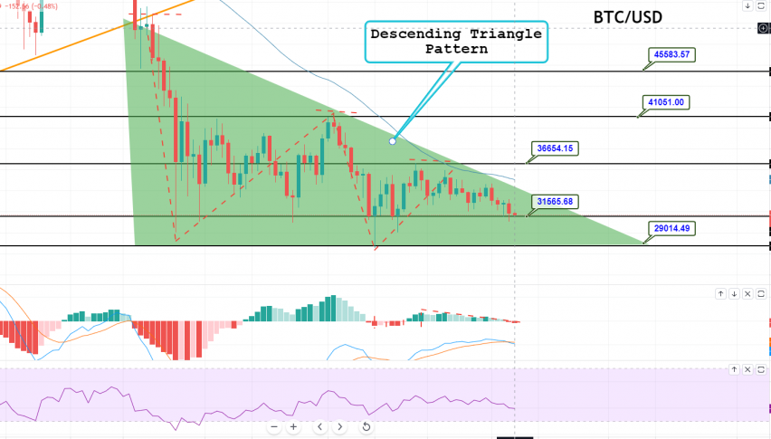 The BTC/USD coin failed to stop its previous long declining streak and remains in a bearish zone around the $31,000 level. Bitcoin price ext