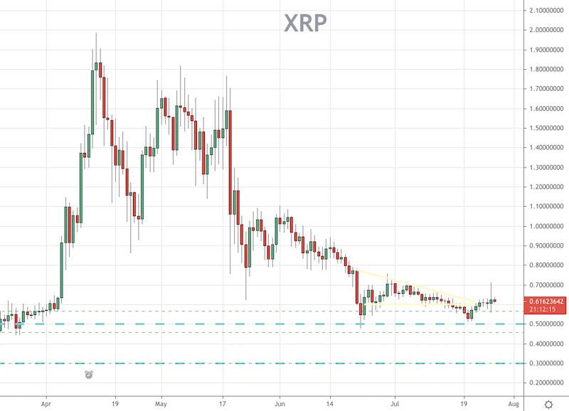 XRP has fallen back after price spiked on some exchanges yesterday. For now, price is still above the $0.60 level.