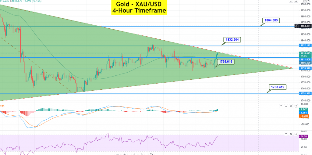 Meanwhile, the long-lasting tussle between the US and China exerted some additional pressure on the market trading mood, which led to further gains in gold. Besides this, the weakness of the broad-based US dollar, which was triggered by multiple factors, was seen as another key factor that provided an additional boost to the dollar-denominated commodity,gold. In contrast to this, the increasing optimism surrounding US President Joe Biden’s infrastructure spending bill helped the market trading mood, thereby limiting the losses. This was seen as the key factor that kept a lid on any additional gains in the safe-haven-metal. At the time of writing, GOLD was trading at 1,816.87, and consolidating in the range between 1,806.93 and- 1,818.30.