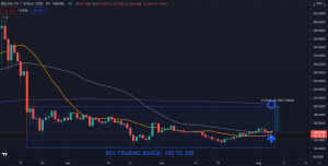 BSV has been on a downtrend since achieving a bearish double top pattern early this year. It dropped to a low of 104, after having reached all-time highs of 497 this year – a drop of almost 80%. Since then, it has been trading in a tight consolidation (100 to 200). It would seem that the round number, 100.00, is a strong psychological support, as the price has never fallen below this.