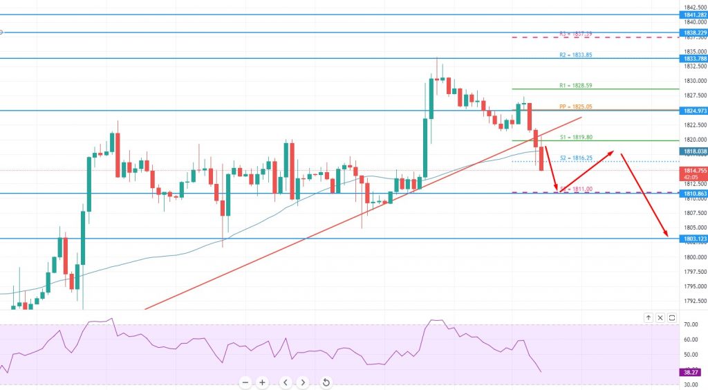 Gold’s immediate support lies between 1,816 and 1,810 on the support side. While the Stochastic also points to a gold-selling tendency. If the 1,810 level is broken further, the metal will be exposed to the 1,801 level. Good luck!
