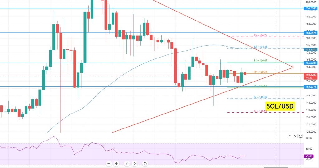 Even after the weaker USD price-action, which generally has a beneficial impact on the SOL/USD pair, the SOL/USD coin pair failed to put a stop to the downward moves of early in the day. The SOL/USD price picked up some more offers around the $160.00 mark, during the Asian trading session. Engineers have been unable to swiftly remedy this issue, resulting in transactions on the Solana blockchain failing to process blocks. As a result, Solana coin came under some downward pressure.