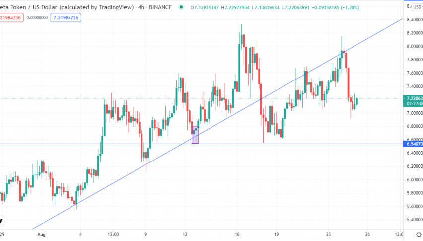 Theta managed to push past the $8 level on Saturday, reaching as high as $8.32. It fell almost to the $7 line after that, but it is pushing close to that $8 level again today.