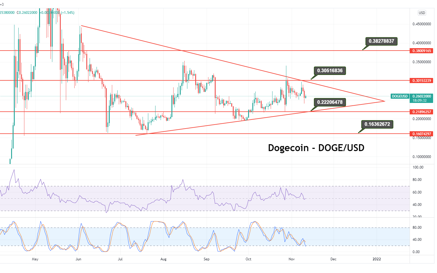 Dogecoin Price Analysis – Symmetrical Triangle Underpins DOGE at $0.2220