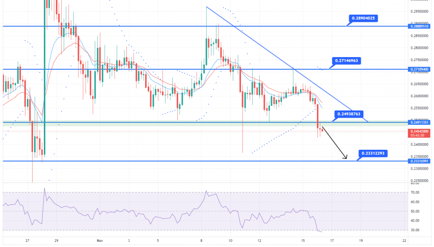 If the price rises over the 0.26 level, the bulls will try to push the DOGE/USD pair back to $0.2700. However, the bearish bias is dominant now, and it may lead the DOGE/USD towards the next support level of 0.2330 and even lower. Therefore, we have opened a sell trade in Dogecoin, to target the 0.245 level. Good luck!