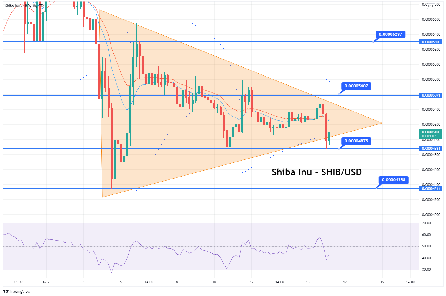 On the technical front, trading in the SHIB/USD is choppy at the 0.000050 level, while it maintains a narrow trading range of 0.00006390-0.0000050. On the bearish side, the breakout at the 0.0000052 support level could extend the selling trend until 0.000044. Conversely, a breakout at the 0.00006390 level exposes the Shiba Inu price to the 0.00007490 level. As long as the market is trading in this narrow range, we can expect choppy trades. Good luck!