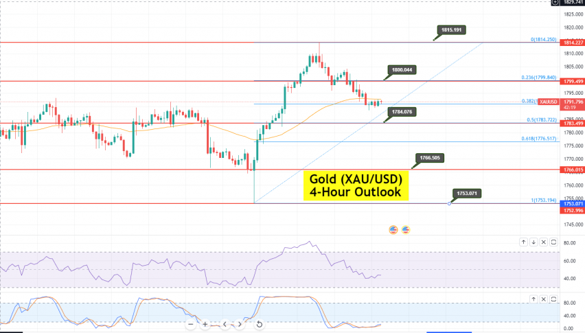 On the 2-hour timeframe, gold has completed a 38.2% Fibonacci retracement at 1,792. Closing of candles below this may extend a selling bias until 1,783 (50%) or 1,776 (61.8%). Stay tuned to FXLeaders trading signals for more updates. Good luck!