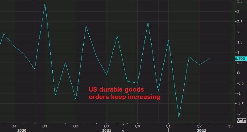 - US May durable goods orders +0.7% vs +0.1% expected