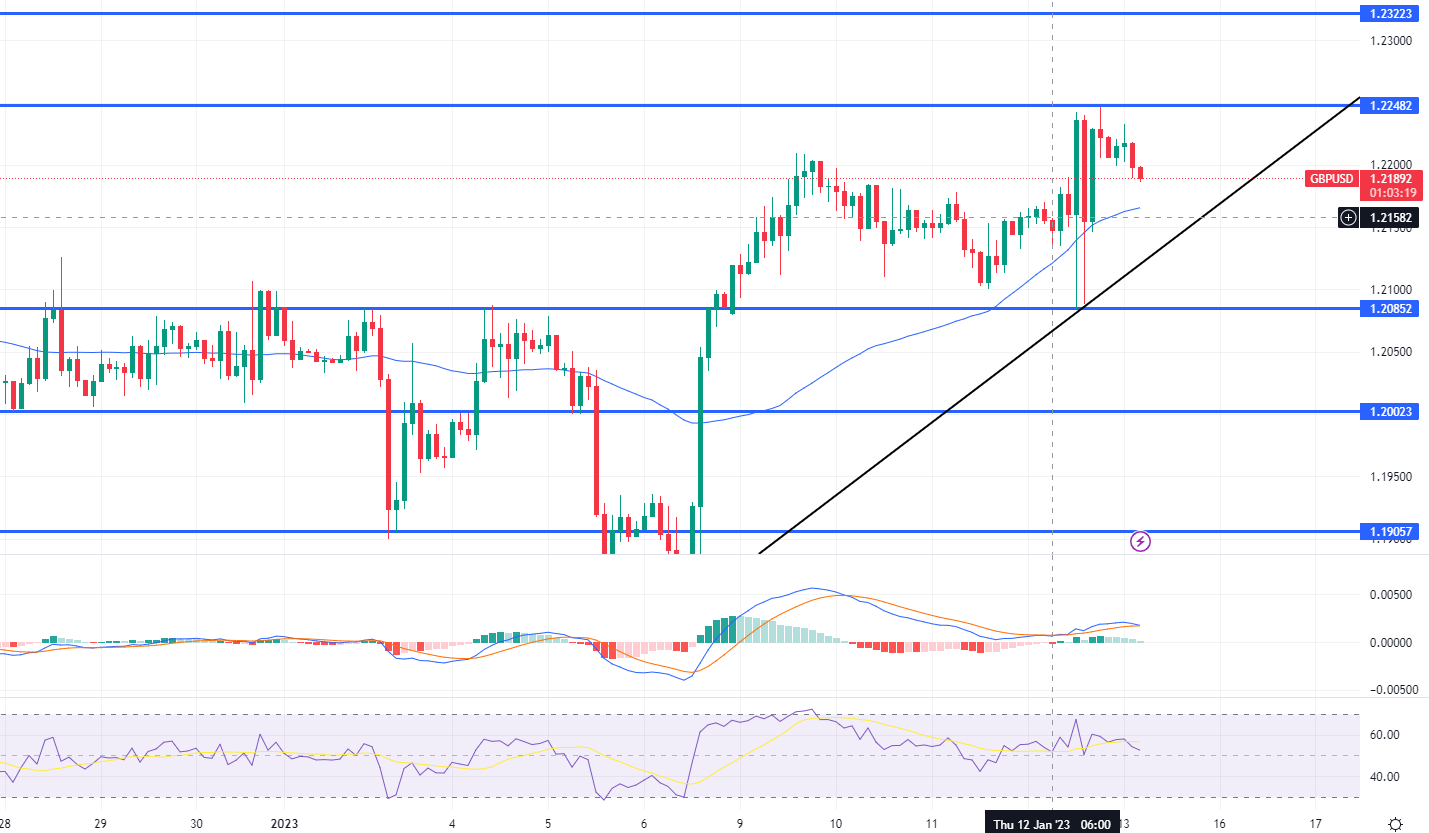 GBP/USD falls slightly at 1.2200 as bulls pause at the monthly high ahead of critical UK data on Friday morning.