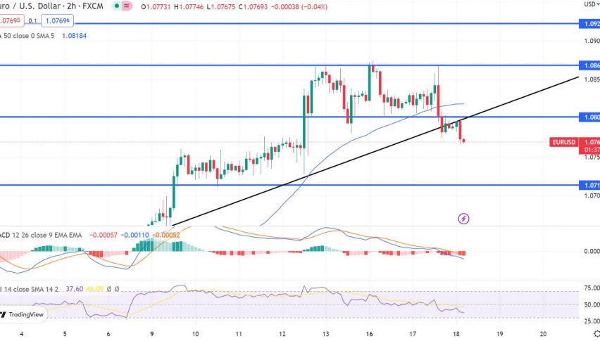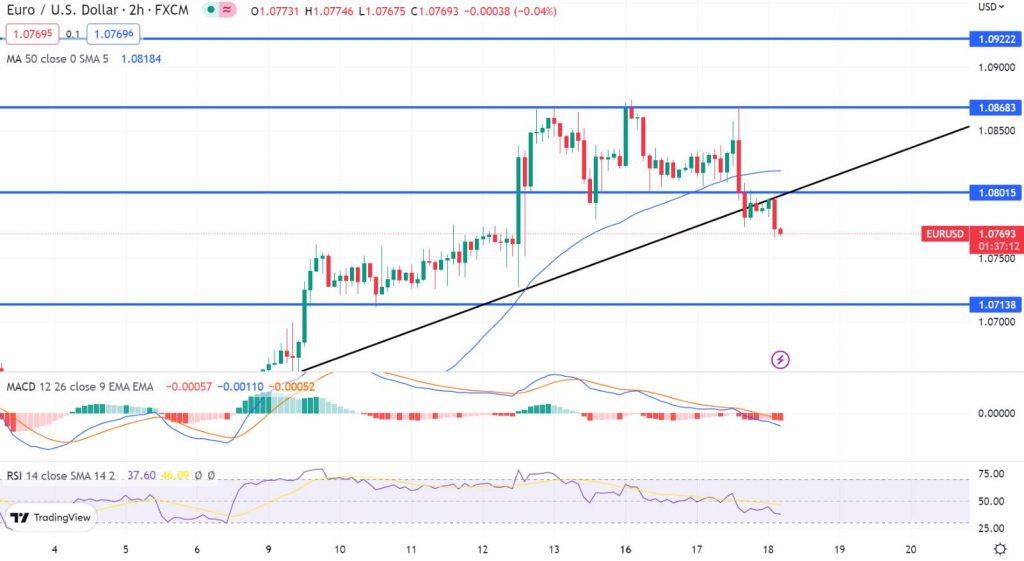 EUR/USD is currently trading near its intraday low of 1.0773.