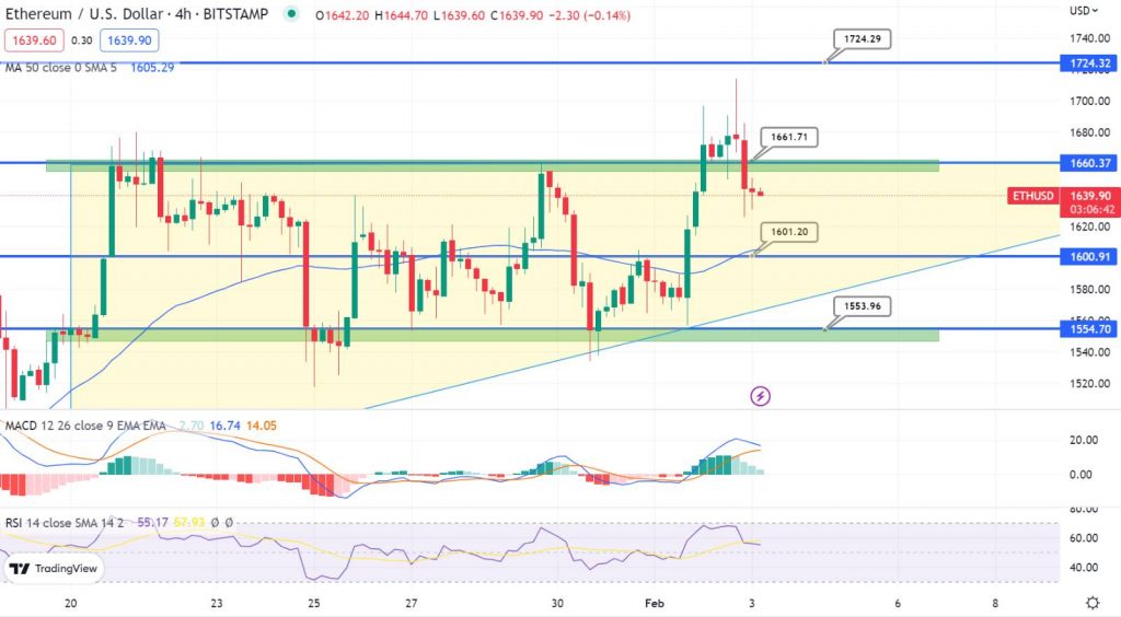 ETHEREUM recently hit a high of $1,700 against the US Dollar, however has now taken a step back in price. If it breaks below the support level of $1,600 then it may continue dropping. ETHEREUM registered a substantial uptrend, clearing the $1,680 level and surging above $1,700. It even hit a high of $1,714 before facing some downwards correction in line with Bitcoin’s performance. Despite this, the currency still remains supported over the $1,650 mark to enable further gains.