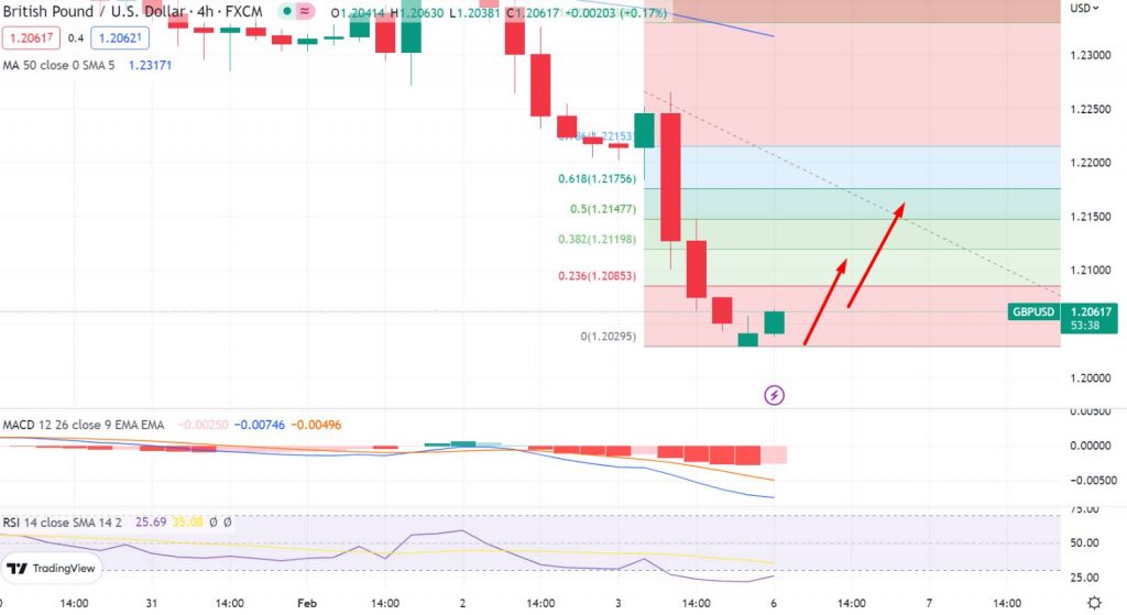 GBP/USD has been going down for three days in a row, taking it close to the 1.2000 psychological level. At the moment, it is standing near 1.2030. The GBP/USD pair have managed to maintain gains despite various negative catalysts concerning the UK and Bank of England, while also taking cues from the Federal Reserve’s strong stance before Chair Powell’s speech.