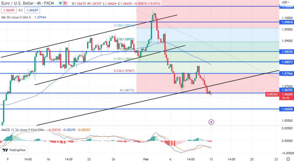 The EUR/USD pair is trading around 1.0670, close to a five-week low, as traders wait for more market-moving events to confirm the latest bearish trend. Recent comments from a US General that eased fears of Chinese spying on the US may strengthen the market’s sentiment. However, dovish comments from ECB officials contrast with comparatively upbeat statements from Fed policymakers, keeping the EUR/USD sellers hopeful.