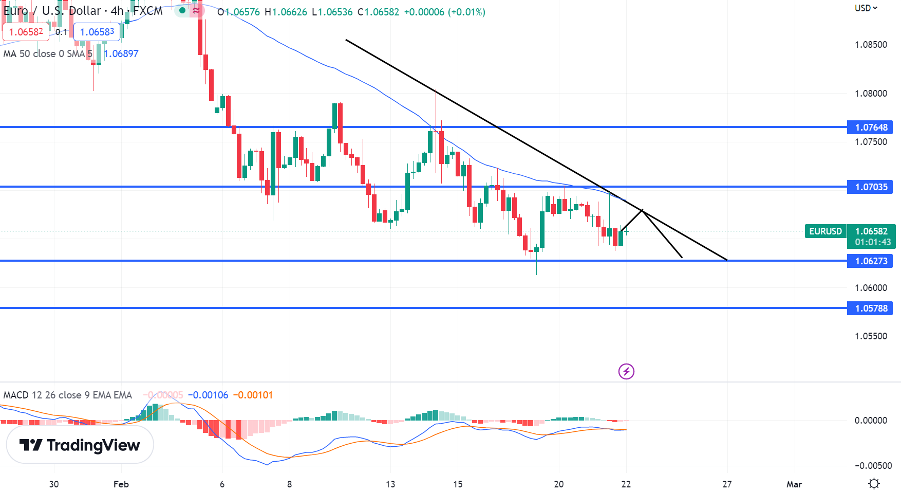 If the asset suffers a significant decline below the February 17 low of 1.0613, it could head towards the December 22 low of 1.0573 and even down to the January 6 low of 1.0483. However, a break above the February 16 high of 1.0722 could propel the asset towards the 50% Fibo retracement level of 1.0758, followed by the February 14 high of 1.0800.