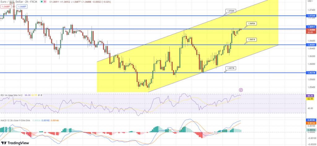 The EUR/USD has made a small gain in the Asian session, moving up from 1.0680 and nearing resistance around 1.0700. Investors are feeling more optimistic about risk, leading to a rise in the major currency pair’s value. This is due to investors discounting the risk of a US recession, thanks to the Federal Reserve’s increased interest rates.