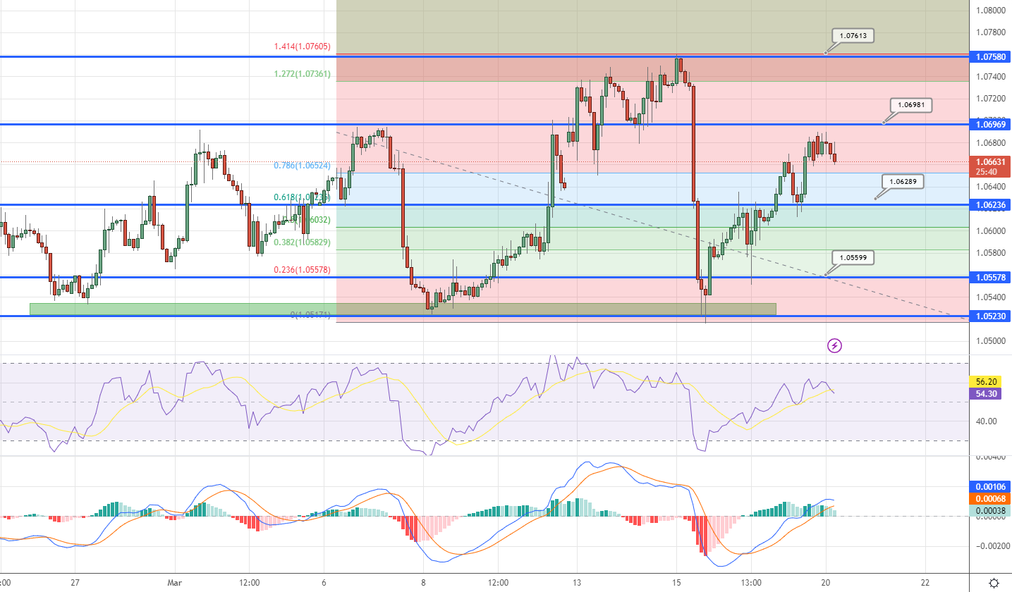 The euro is strengthening against the dollar to start the week, hovering around 1.0680. The UBS-Credit Suisse transaction and the combined efforts of major central banks to prevent a liquidity crisis have supported the rebound of US Treasury bond yields and the US Dollar, propelling the currency pair higher for three days in a row.