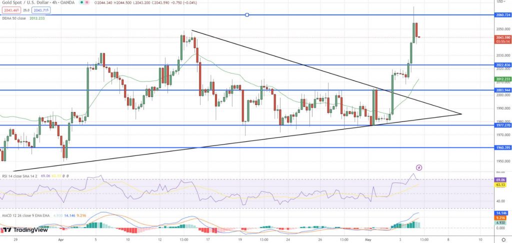 GOLD price has experienced a significant pullback, dropping to around $2,040.00 during the Asian session after reaching an all-time high of $2,079.76. The precious metal has swiftly corrected due to profit-taking following strong gains driven by the Federal Reserve’s (Fed) altered stance on interest rate guidance after consecutively raising key rates by 25 basis points (bps) to 5.00-5.25%.