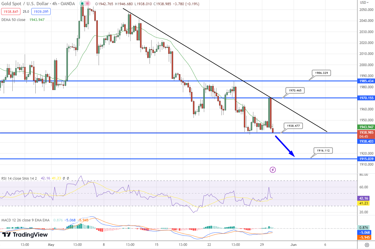 The price of GOLD (XAU/USD) experienced significant selling pressure after a brief rebound to around $1,946.70 during the Asian session. It has extended its downward movement, reaching near $1,940.00, as the US Dollar Index (DXY) recovered its losses and aimed for a new daily high above 104.34.