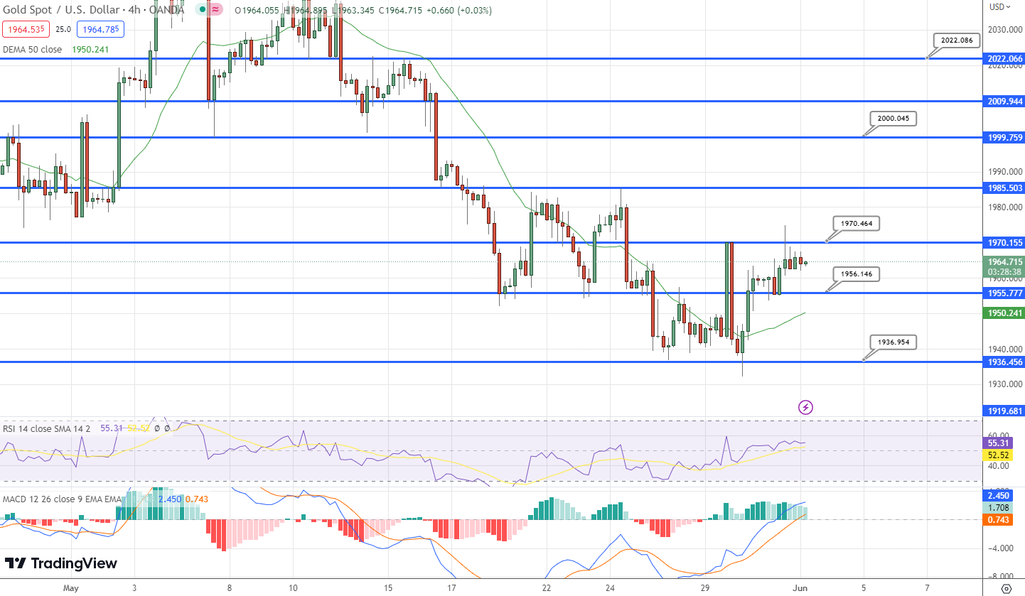 GOLD price (XAU/USD) is showing fluctuating movements within the range of $1,962 to $1,967 during the Asian session. The precious metal has entered a sideways phase as investors eagerly anticipate the release of United States employment data. This data is expected to provide crucial insights into the Federal Reserve’s (Fed) interest rate policy for June.