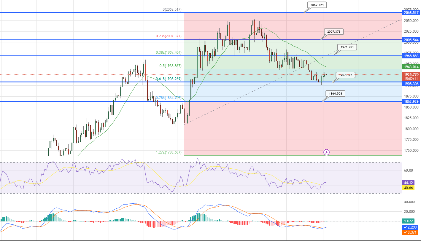 Conversely, support is anticipated near the $1,908-$1,907 region, with further levels at the $1,900 psychological mark and the multi-month low around $1,893-$1,892. A decisive break below these levels could expose the important 200-day SMA around $1,860.