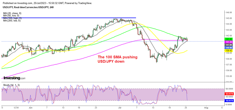 USD/JPY has been displaying incredible strength as it gained around 15 cents from April until the beginning of July. Even after the strong retreat early this month, buyers came back and pushed the price back up from 137 lows to almost 142, claiming back most of the losses. Although the 100 SMA (green) has been acting as resistance at the top and has been pushing the highs lower.