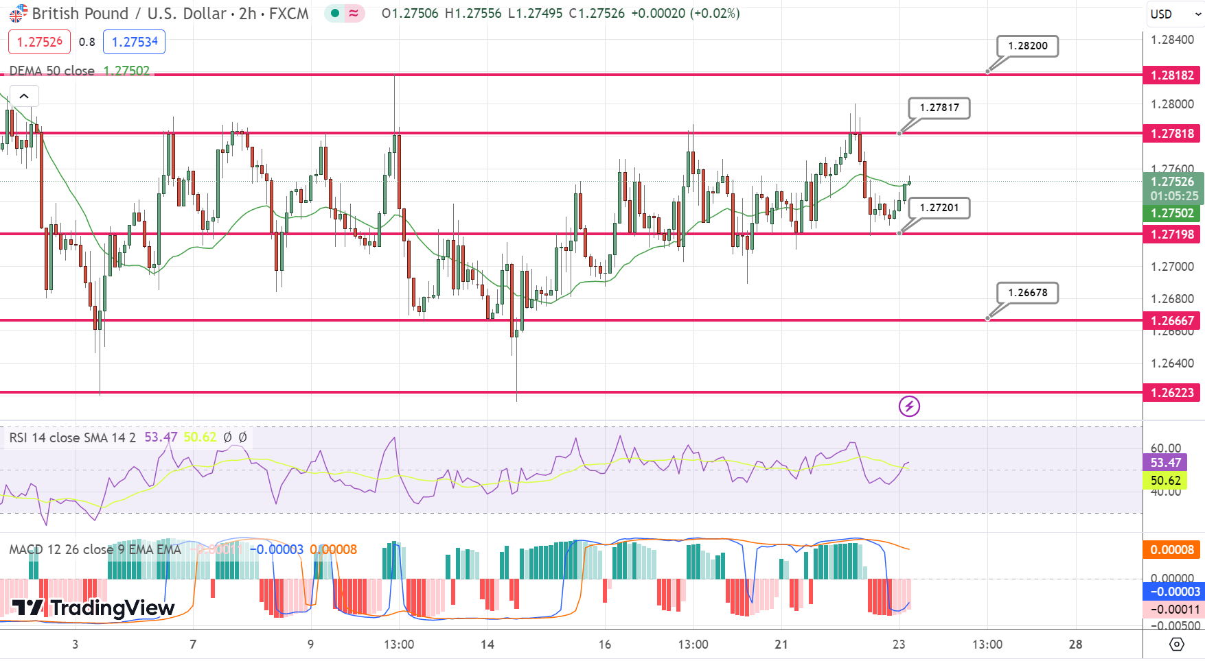 In the Asian session on Wednesday, GBP/USD is trading higher around the 23.6% Fibonacci retracement level at 1.2740.