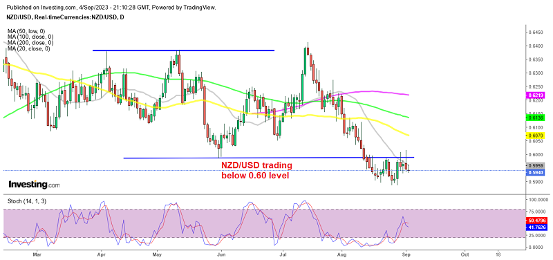 NZD/USD retraced above 0.60, but buyers couldn't hold the gains and we're seeing a bearish reversing pattern forming on the daily chart