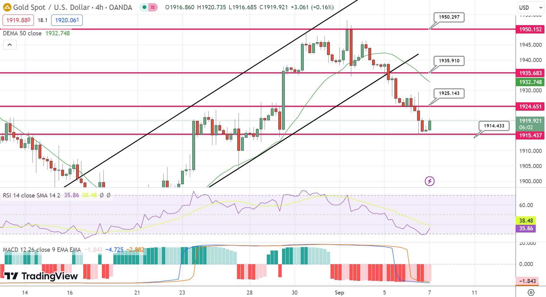 In a shift from recent trends, GOLD prices broke a consecutive five-day decline, now trading near the $1,920 mark, marking a modest increase of 0.20% during Thursday’s Asian trading hours. Yet, the metal remains encumbered by potential monetary policy shifts, particularly as market participants gauge the likelihood of a 25 basis points interest rate augmentation by the US Federal Reserve by the culmination of 2023.