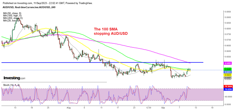 If the current positive investor sentiment continues, it could potentially lead to an extension of the rebound for the Australian Dollar (AUD). Positive sentiment can be influenced by factors such as improved economic outlooks, higher commodity prices (since Australia is a major commodity exporter), and a weakening US Dollar. While they managed to breach the 100 SMA once as the buyerds pushed the price to 0.6450 yesterday, it’s essential to note that there were no closing prices above this moving average. This inability to close above the 100 SMA suggests that the bullish momentum seems weak and it’s likely to be short-lived.