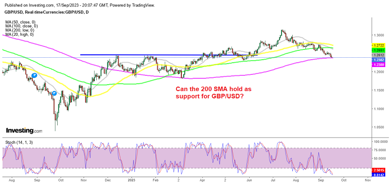 GBP/USD broke below the 1.2450 support and resistance level last week, but it is facing the 200 daily SMA now