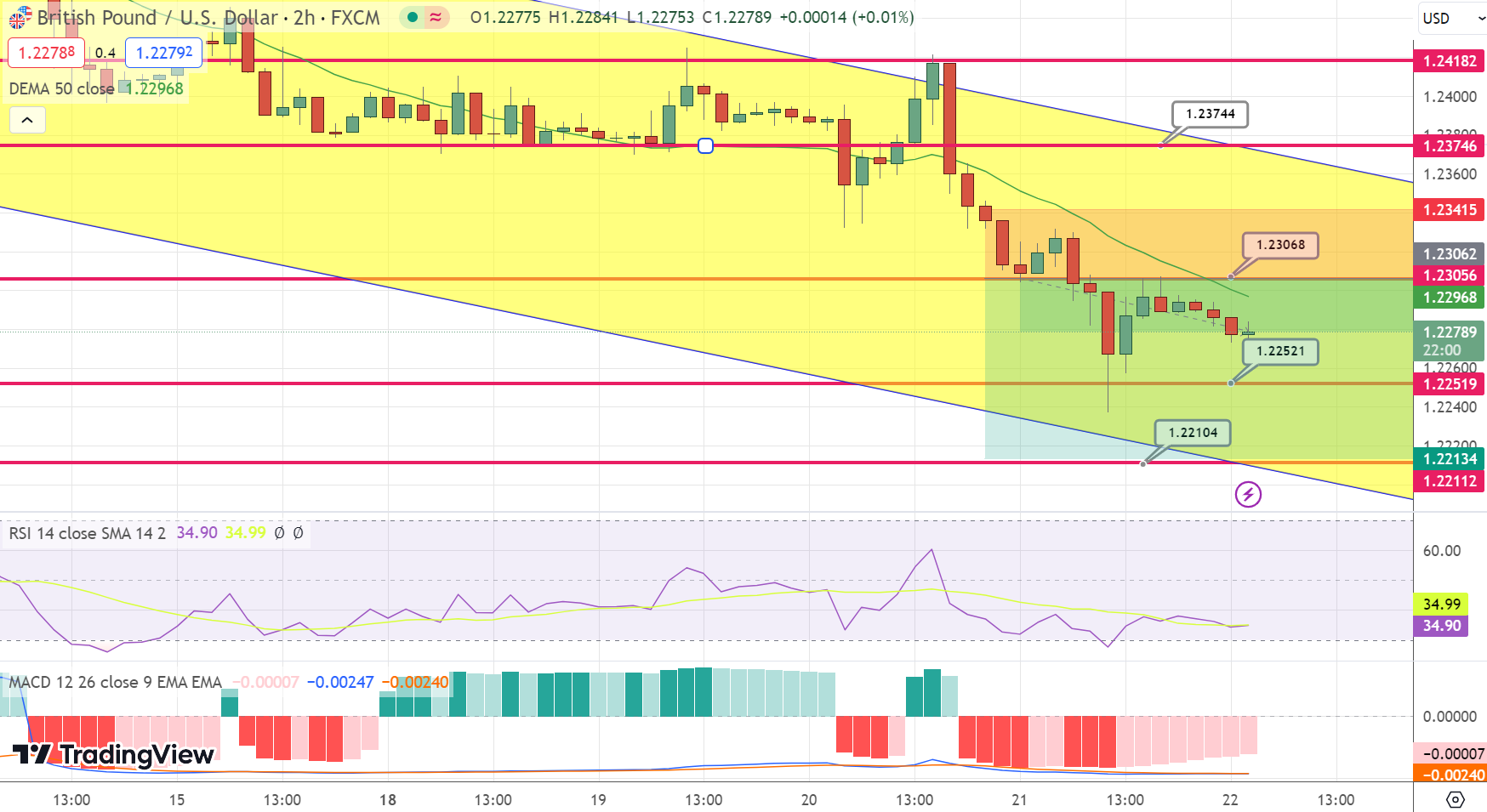 Currently, the currency pair hovers under the 1.2300 threshold, indicating a potential continuation of the downward trend observed over the recent couple of months.