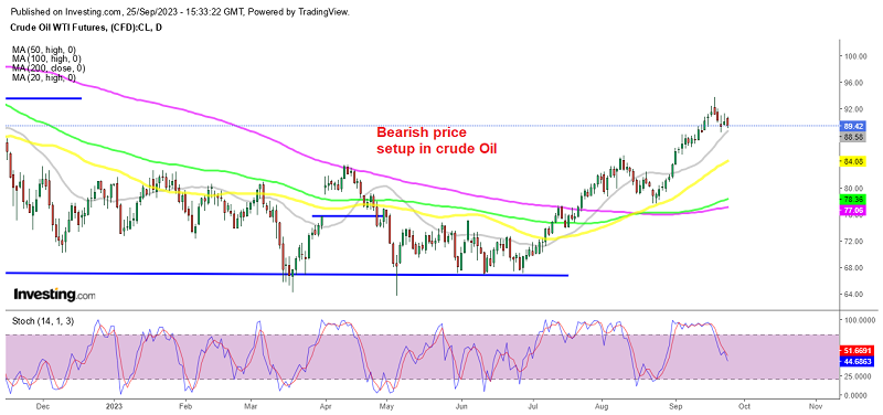 Crude Oil has been retreating since last Tuesday and it giving some bearish signals after moving above $90/barrel